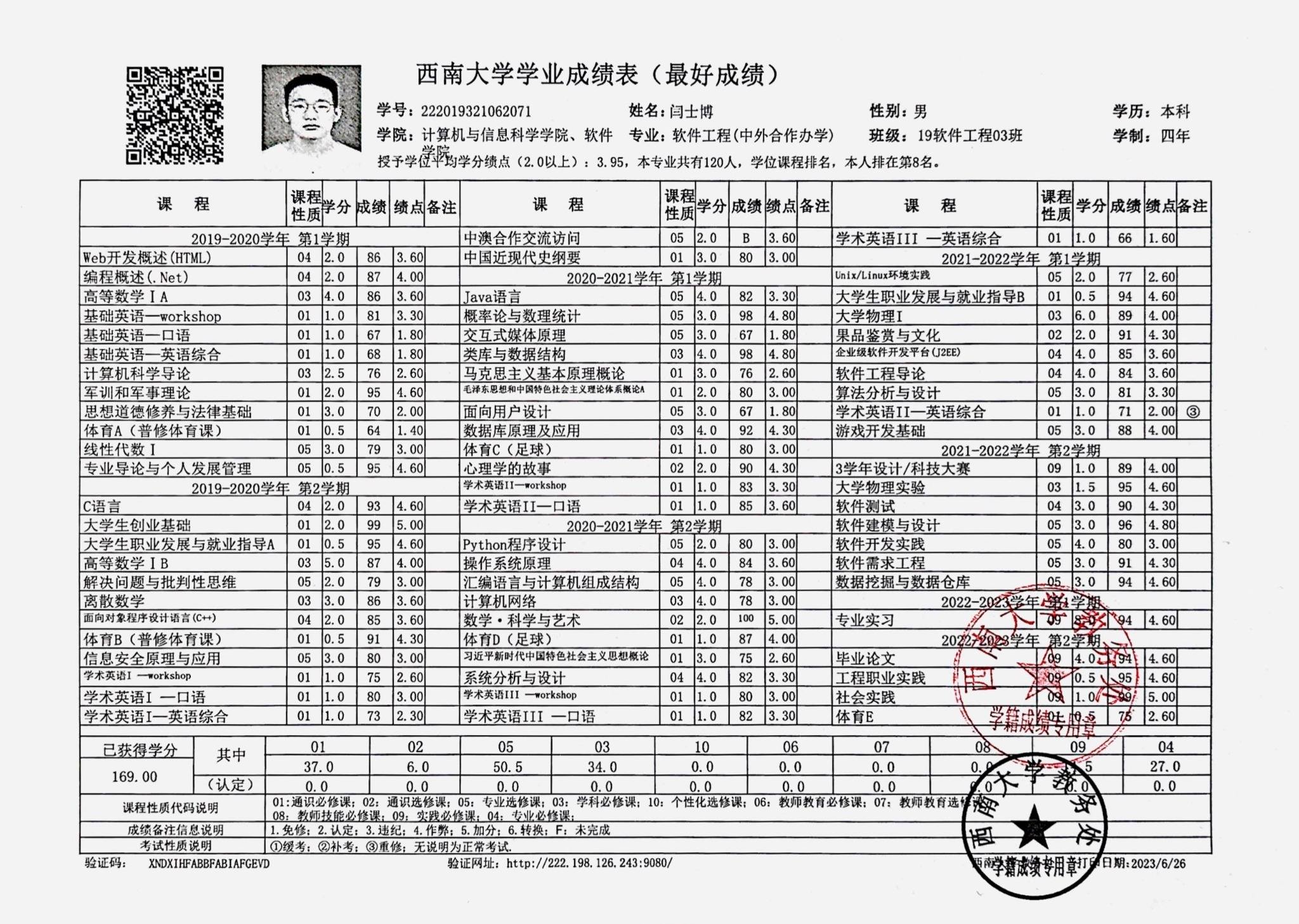 此后用近一年的时间在全国各地旅行,也在不断反思个人方向与节奏。2023 年 10 月决定再次备考,将目标明确为西南大学软件工程专业,最终以专业综合成绩第一(初试 373,复试 89)的成绩考回母校。